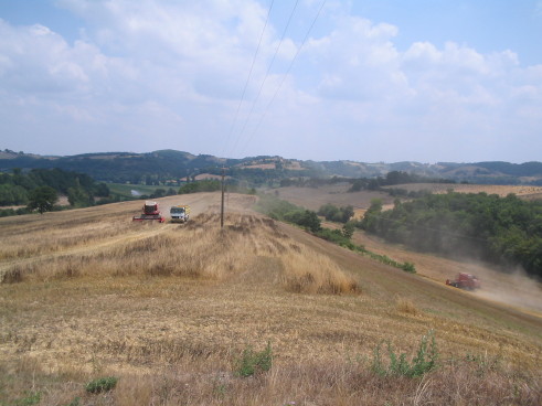 Gestern abend spät haben wir fertig geerntet. Mit zwei Mähdreschern wurden die 40 ha Feveroles gemäht. Der Abtransport erfolgt mittels Containern. Die Trockenheit hat den Bohnen stark zugesetzt: die Erträge sind unterdurchschnittlich. Trotzdem werden wir jetzt Sichlete feiern!