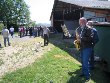 Hingegen muss der unbekannte Nachwuchs-Saxofonist am letzten Repas de la chasse in Traversères noch viel üben, um auch an das Festival zugelassen zu werden. Immerhin scheint dem Hund das Konzert zu gefallen….