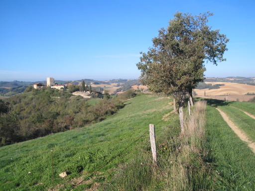 Novemberwanderung von La Ouaitte, über Tour Feodale Lagouarde, Tambouret, Peyrère, Moulin à Vent, Mazères, Moulin de Mazères und zurück auf La Ouaitte (Hügelzug entlang des Tals des Arrats).