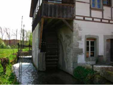 1. Das unterschlächtige Wasserrad der alten Oele betreibt einen Generator. Der erzeugte Strom wird ins Netz eingespiesen (ca. 1kW/h). In den letzten Jahren war allerdings die erzeugte Strommenge bescheiden, weil der Gewerbekanal zuwenig Wasser führte. Zudem ist der Unterhalt der Anlage relativ aufwendig (Reinigung des Rechens, Reparaturen). Weil der Oekostrom mit nur 20 Rappen pro kWh entschädigt wir, ist der Betrieb nicht kostendeckend.