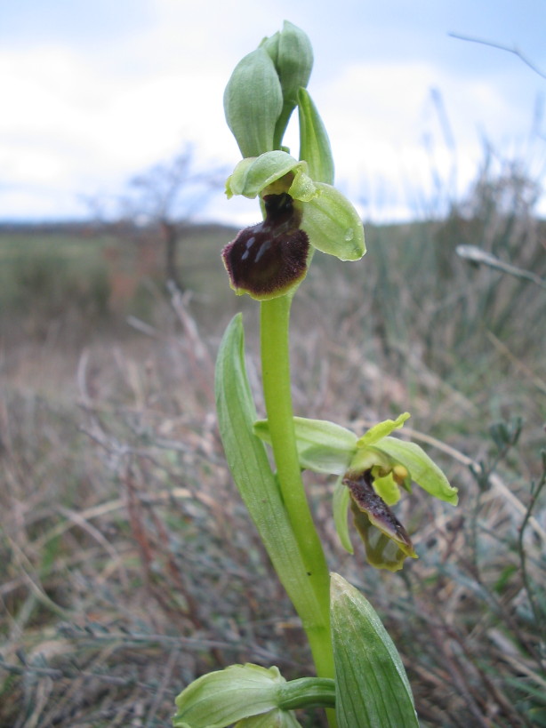 Kleine Spinnenragwurz, Ophris araneola, auf dem südexponierten Schneckenhügel, obschon diese Art erst in einem Monat blühen sollte…