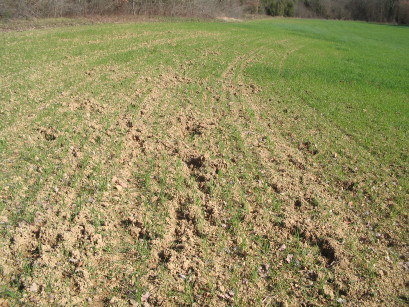 Man sieht sie selten, weil sie vor allem nachtaktiv sind. Aber ihre Spuren sind unübersehbar. Sie haben es auf Wurzeln abgesehen, natürlich auch auf Maiskolben und Eicheln. Bei uns scheinen sie insbesondere die Blumenzwiebeln der wilden Gladiolen zu lieben….. die lieben Sangliers. Zur Strafe gibt es bald wieder mal Wildschweinbraten.