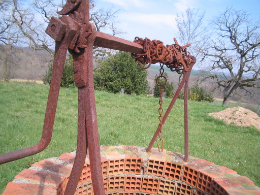 Zur Gartenbewässerung aktivieren wir jeweils unseren Ziehbrunnen. Allerdings mit einer elektrischen Senkpumpe und nicht mit der alten Drehkurbel. Der Grundwasserstand liegt zur Zeit in 9m Tiefe.
