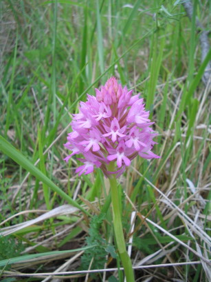Die ersten Spitzorchis blühen jetzt, noch vereinzelt zwar und nur in Südlage. In einer Woche wird die Weide hinter dem Haus aber rosarot leuchten, wie letztes Jahr. Und vielleicht befindet sich auch wieder ein Albino darunter….