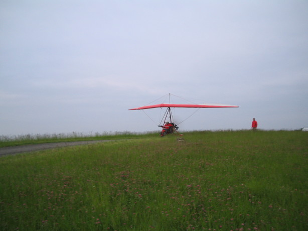 Ausnahmsweise sind wir gestern früh um fünf Uhr aufgestanden. Ich habe Gäste auf den Zug gebracht. In der Morgendämmerung entdeckte ich am Waldrand auf unserer Ferme ein eigenartiges Gestell…. Beim Näherkommen entpuppte sich das Gerät als zweisitziger Deltasegler mit Propellermotor. Die beiden Piloten waren am Vorabend, bevor sie ihr Ziel erreichten, durch den Einbruch der Dunkelheit überrascht worden und haben kurzerhand auf unserem Zufahrtsweg eine Aussenlandung riskiert (ganz schön mutig….). Wie sie mir sagten, kommen sie aus dem Departement Ain (östlich von Lyon) und wollten den Flugplatz Auch erreichen. Selbst verständlich haben sie noch darauf hingewiesen, dass ihr Fluggerät leider in der Schweiz verboten sei…