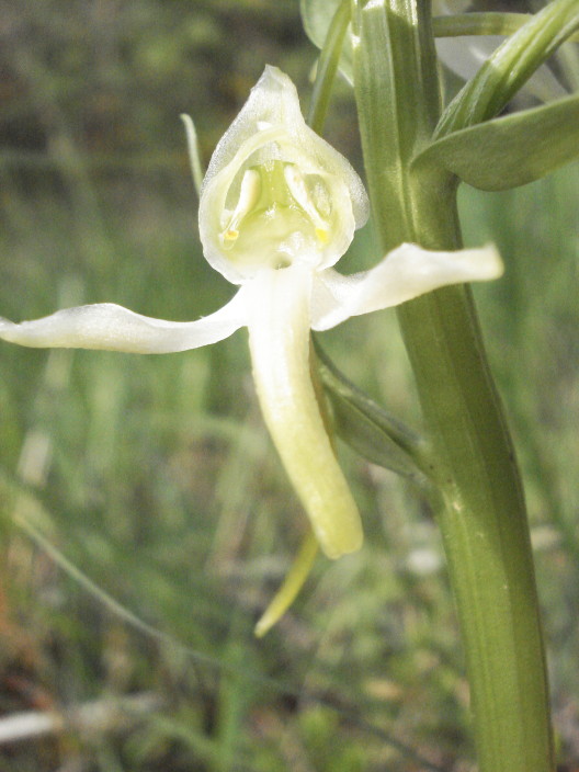 An den Südhängen ist sie schon verblüht, aber nordseitig und im Halbschatten der Eichenhaine leuchtet sie noch aus dem hohen Gras: die grüne Waldhyazinthe, Platanthera chloranta.