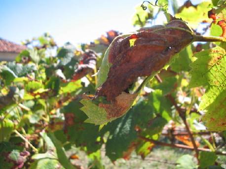 Die wenigen Bio-Rebbauern hatten dieses Jahr hier im Südwesten nichts zu lachen. Das feucht warme Wetter im Frühjahr war ideal für Pilzkrankheiten. Der (falsche) Mehltau, le mildiou hat den Reben so zugesetzt, dass der Ertrag nur noch minimal sein wird. Ohne systemisch wirkende Fungizide war den Pilzkrankheiten nicht beizukommen. Systemisch wirkende Pflanzenschutzmittel werden von den Pflanzen aufgenommen und in ihren Gefässen transportiert, das heisst sie wirken kurativ und sind im Bio-Landbau untersagt. Die im Bio-Rebbau zugelassene, nur präventiv wirkende Bordeauxbrühe (Cu-Spritzung), konnte in diesem Jahr die Pilzkrankheiten auf den Reben nicht in Schach halten.