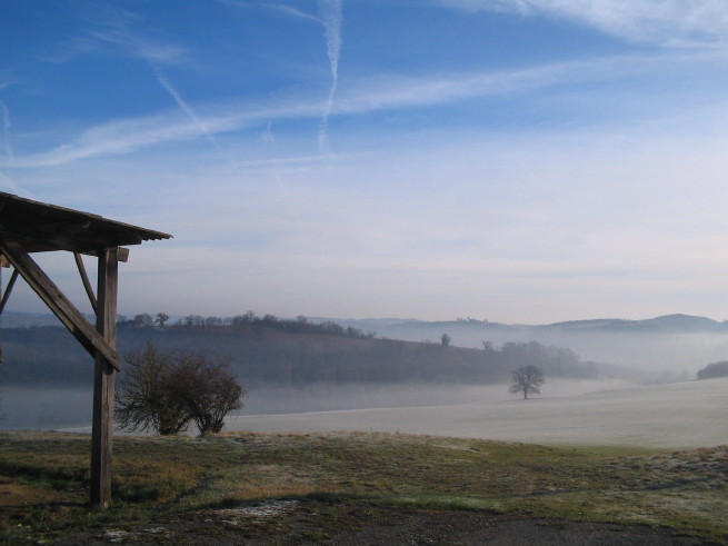 Nebelschwaden in den Talböden, „Biecht“ auf den Bäumen, douce France…