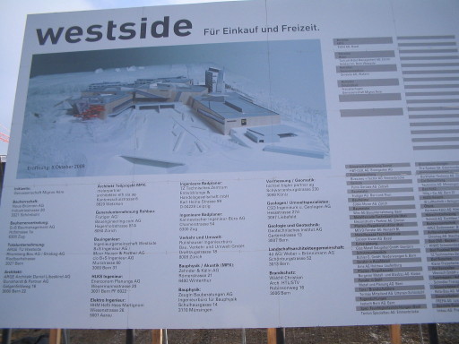 Das ist zur Zeit die grösste private Baustelle in der Schweiz. Nach den Plänen des Stararchitekten Daniel Liebeskind entsteht in Brünnen, am westlichen Stadtrand von Bern eine riesige Überbauung. Einkaufen, wohnen, arbeiten, erholen… alles soll in diesem neuen Stadtquartier möglich sein. Eröffnung 10. Oktober 2008!