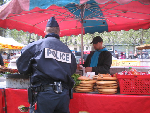 Am Place de la République ein Multikultifest der Gewerkschaften, Linksalternativen, Anarchisten, Menschenrechtsaktivisten… An unzähligen Ständen wird grilliertes Fleisch und Gemüse aus diversen Kulturkreisen angeboten. Bratenduft überall auf dem Platz.