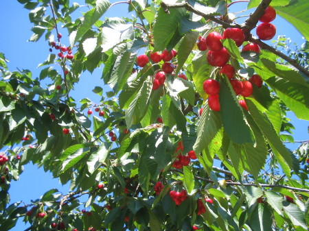 Gestern war Kirschen ablesen angesagt. Die süssen Früchte reifen in der Schweiz fast einen Monat später als in SW-Frankreich. Gut für uns, weil wir dadurch dieses Jahr gerade zweimal Kirschen-Ernte-Zeit haben. Denn Kirschen sind am besten, sonnengewärmt, direkt vom Baum! Verkauft werden die Kirschen zur Zeit zu einem Kilopreis zwischen sfr. 6.- bis 10.-.