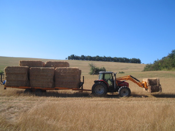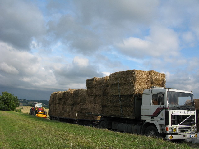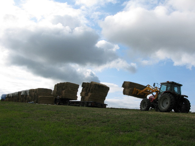 Ich muss mein Heu für den Verkauf an die lastwagenbefahrbare Zufahrtsstrasse verfrachten. Heavy work! 150 Tonnen schwer!