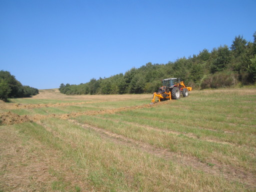 Baggere ist eine meiner Lieblingsbeschäftigungen. Wahrscheinlich weil ich gerne in der Erde wühle und das mit einem hydraulisch gesteuerten Gerät sehr viel leichter ist als das früher von Hand mit Schaufel und Pickel der Fall war… (nur fliegen ist schöner). Ich bin am Drainagerohre verlegen und hoffe so, die lästigen Nässen in meinen Feldern zu verbannen. Kaum zu glauben, dass noch vor drei Monaten wegen Staunässe Feldarbeiten hier völlig unmöglich waren.
