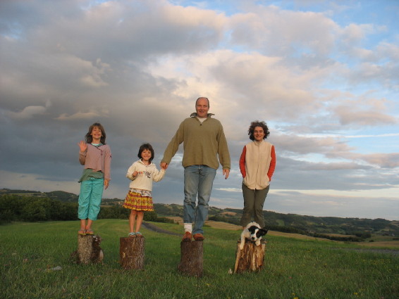 Salomé, Zoé (elle a sept ans demain!), Olivier, Séverine et le chien Dash!