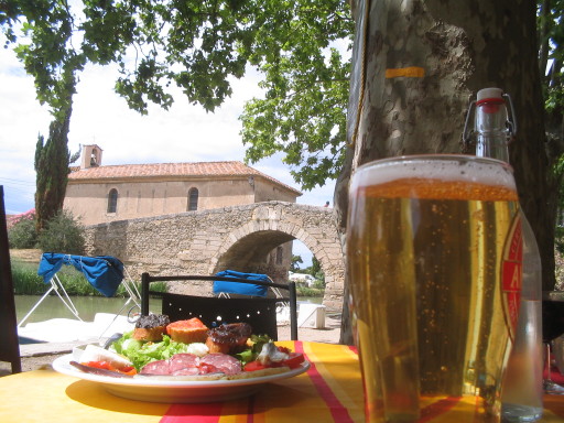 Baufrau und Baumann (sonst immer entre les deux mers) sind ein paar Tage am Mittelmeer (wie halb Frankreich) und beobachten die Leute, die Quallen, die Dörfer, die historischen Bauten, die Salinen…. und frequentieren fleissig die Gartenrestaurants.
