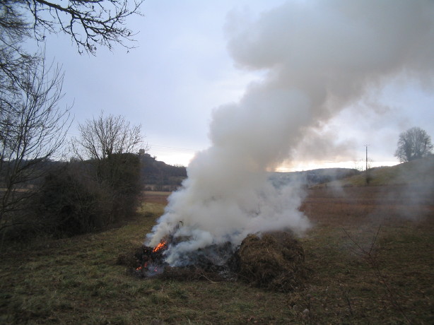 Die Behörden haben ihre liebe Mühe, auch in der France profonde die EU-Umweltschutzvorschriften durchzusetzen. Das Verbrennen von Gartenabfällen, Heckenholz und anderem organischen Material hat auch hier Tradition. Hand aufs Herz: Das Härdöpfu bräteln in den Kartoffelstaudenfeuer in unserer Kindheit war halt faszinierend und abenteuerlich…