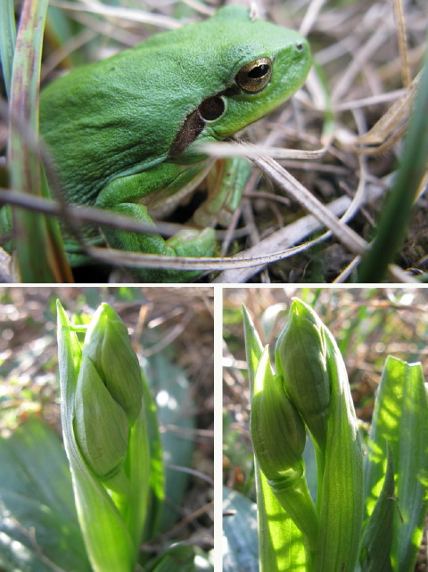 Les grenouilles et les Ophrys marzuola sont prêts à sauter: