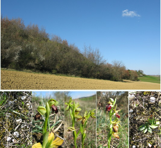 Auf unserem „Schneckenhügel“ hat es zahlreiche Orchideen und viele leere kleine Schneckenhäuschen. Südexposition, steinig, trocken.