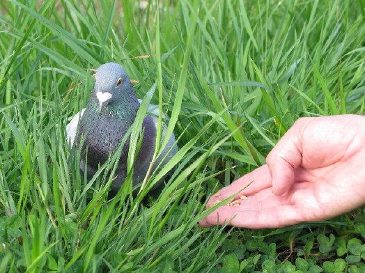 Gestern hat uns eine Taube besucht. Das ist nichts Aussergewöhnliches. Aber die gestern war sehr zutraulich, liess sich fast berühren und pickte mir die Weizenkörner aus der Hand. Wahrscheinlich bevorzugt sie einfach unseren Bioweizen ;-)….