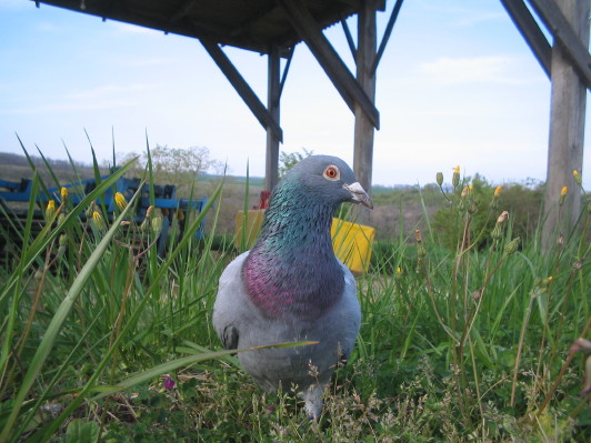 Sie ist beringt, hat eine je eine Nummer auf einem blauen und orangen Ring (Nr.260178E/2007) Wer vermisst eine Brieftaube ?