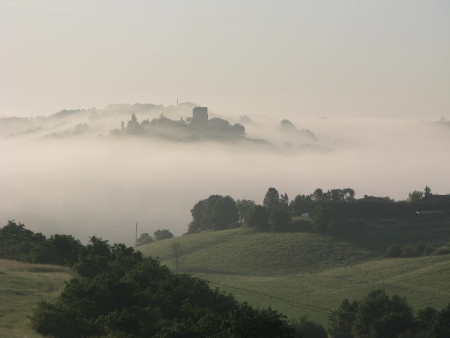 …. bei uns rechtzeitig aufsteht, dann wird man mit spektakulären Landschaftsbildern entschädigt. Die Umgebung unserer Ferme ist noch in Watte verpackt….
