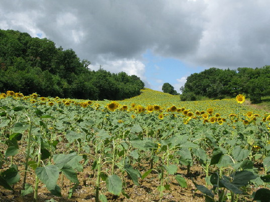Die lieben Rehlein lieben ganz offensichtlich die jungen Sonnenblumen. Entlang der Hecken und Waldränder haben sie die Pflanzen gleich reihenweise abgefressen (siehe Vordergrund im Bild unten). Wir rechnen mit 10 % Minderertrag. Wenn ich aber von den Hagelschlägen in der Schweiz höre, dann doch lieber ein paar Rehlein. Das isch haut buuret…