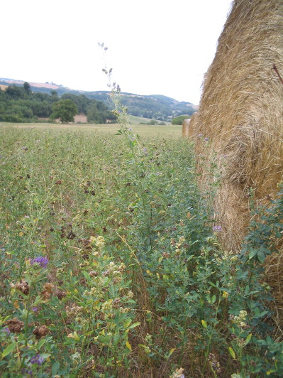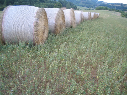 Nach dem Heuet (ende Mai, anfangs Juni) werde ich diese Woche emden. Das Heu verkaufe ich als Luzerne-Raygras-Mischung. Ein Teil der Fläche wird beweidet. Orchideen hat es nur in den Naturwiesen und Brachlandflächen, nicht aber in den Luzernefeldern, die zu meinen Fruchtfolgeflächen gehören.