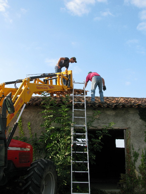 Auf der Südseite dieses alten Daches wollen wir demnächst 80 m2 Solarpanel (Photovoltaique) montieren. Allerdings müssen wir dazu das ganze Dach abdecken, den Dachstuhl erneuern, Latten befestigen, ein Unterdach anbringen und schlussendlich die Panel integrieren.