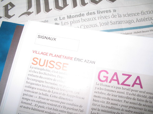 Endlich hat es die Schweiz wieder mal in die Weltpresse geschafft, gleich neben dem Gaza-Streifen… (Magazine, le Monde 24.10.2009):