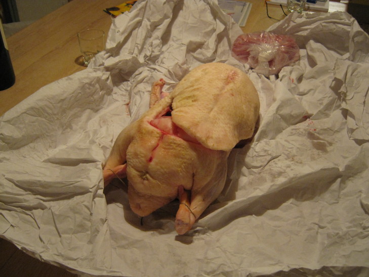Stephanie muss die Ente gleich noch ausmetzgen, damit sie in unseren Kühlschrank passt!