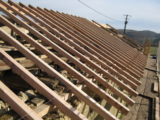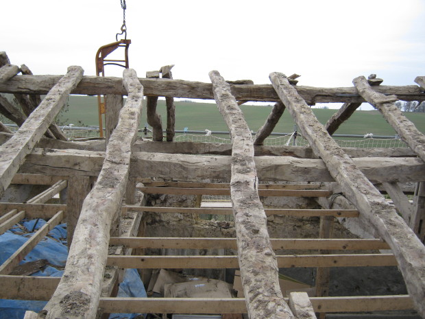 In zwei Tagen sollte das Dach abgedeckt und die noch brauchbaren Rundziegel ausgesondert sein. Anschliessend beginnt die Zimmermannsarbeit am alten Dachstuhl…