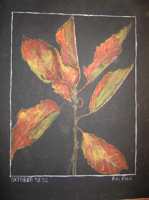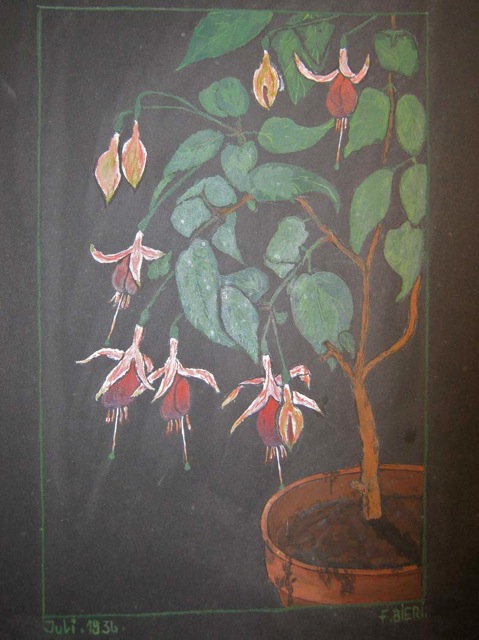 Aufgrund dieser Zeichnungen hat sein Lehrer ihm eine Lehre als Maler empfohlen. Was er dann auch gemacht hat. Während Jahren ernährte er seine Familie als Flachmaler. Und vielleicht hat er dabei immer geträumt, Kunstmaler zu werden, eines Tages. Für uns, seine Familie war er’s. Jedes Wochenende hat er seine Leinwände in der Küche aufgestellt. Den Geruch von Terpentin und Oelfarben hab ich immer noch in der Nase.