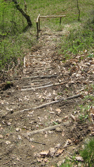 Letztes Beispiel: heute habe ich am Sonnenhügel eine kleine Treppe angelegt: Escalier du sud. Harmonisch in die Landschaft eingepasst. Jetzt fehlt nur noch das Bänkli…