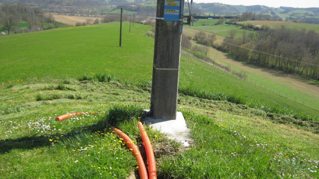 …. und hier bei diesem Strommast sollte die EDF den Anschluss an ihr Stromnetz realisieren. Obschon wir die entsprechenden Verträge schon vor Monaten abgeschlossen haben und die Kosten für die Anschlussarbeiten bevorschusst haben, ist die Eléctricité de France nicht in der Lage, den Anschluss rechtzeitig zu bewerkstelligen. Wir hoffen jetzt darauf, dass unser Oekostrom ab Ende April definitiv fliessen kann…???