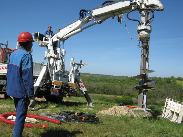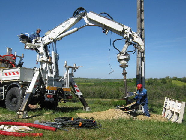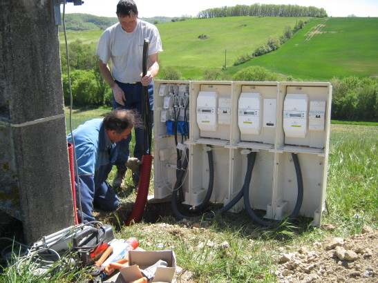 … mit unserer Photovoltaik-Anlage. Gestern wurden die diversen Stromzähler montiert und das Luftkabel entfernt. Harte Arbeit für Freileitungsmonteure: