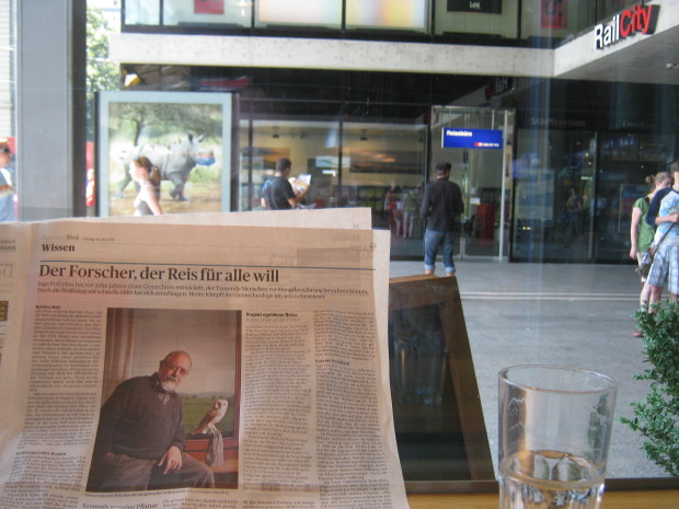 Schön wieder mal in Bern zu sein. Ich sitze im Tibits bei einem kühlen Bier, beobachte die Leute, treffe (zufällig) alte Bekannte, lese wieder mal im Berner „Bund“ (in Papierform und nicht nur elektronisch) zum Beispiel über den alten ETH-Professor Potryskus, der immer noch von seinem Gentechnologie-Reis träumt….