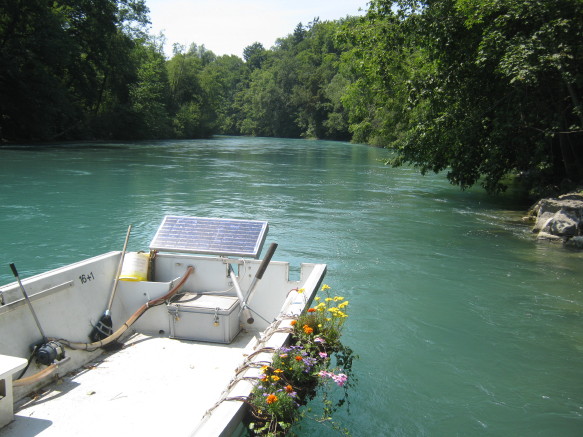 Diese Hitzetage verbringt man am besten in einer Gartenwirtschaft an der Aare. Unser Favorit ist das Restaurant Schloss Reichenbach in der Gemeinde Zollikofen. Die Aare kann man hier mit der Reichenbachfähre überqueren.