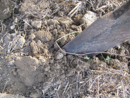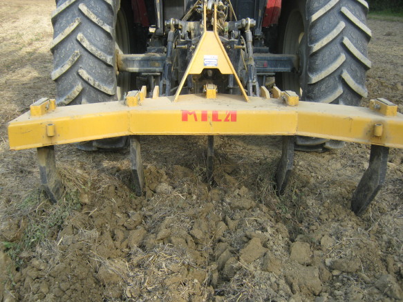 Die Böden hier sind hart, steinig und trocken. Ich mache etwas Lockerungsübungen mit dem Tiefgrubber und versuche damit auch die Ronce-Ableger (Brombeeren) zu bekämpfen.