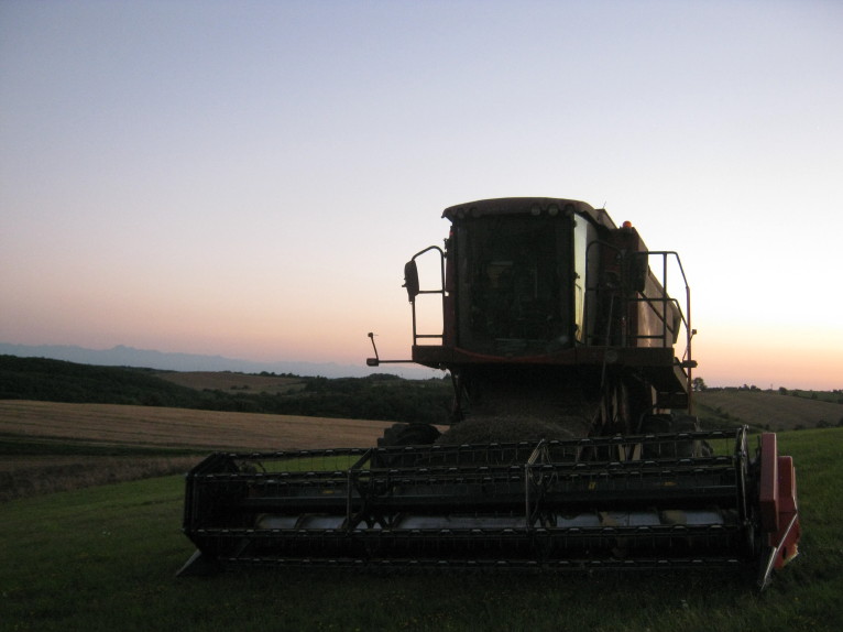 Die schlechte Nachricht: der Mähdrescher ist defekt: eine Schweissnaht im Kühler ist gerissen. Das Ding muss ausgebaut, repariert (oder ersetzt) und wieder eingebaut werden. Hoffentlich können wir vor dem nächsten Gewitter fertig dreschen!
