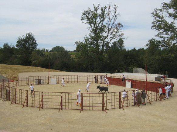 In Seissan wurde eine neue Arena errichtet. Zur Einweihung fand gestern ein Spiel mit wilden Rindern, sog. Course Landaise statt. Im Gegensatz zum zu Recht verpönten Stierkampf fliesst dabei kein Blut.