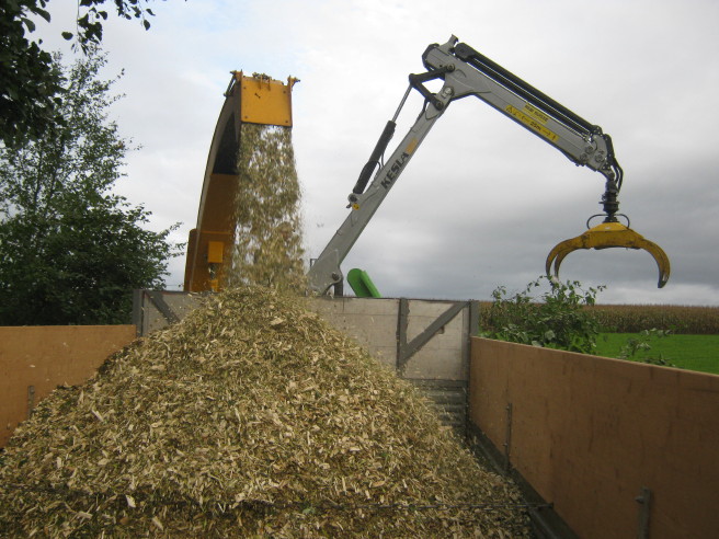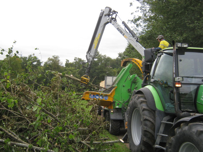 Wedele mache das war früher. Jetzt entsteht aus Sträuchern und Stämmen bis zu 50cm Durchmesser Hackholz. Blitzschnell und ohne grosse körperliche Anstrengung. Dafür mit viel Lärm. Übrigens: „Wedele“ sind im Bärnbiet kleine Holzbündel aus Sträuchern und Ästen und werden bei uns zum Heizen des Backofens verwendet.