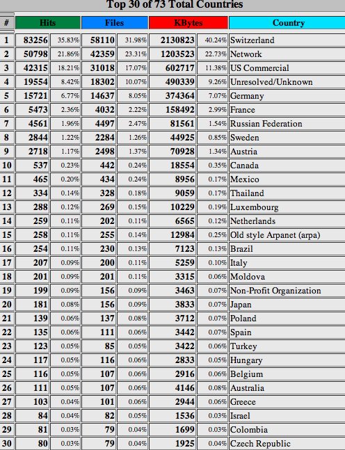 Mein Auswandererblog wird im Durchschnitt täglich von 1200 Leuten besucht (gestern waren es 1278). Etwa ein Drittel der Visiteurs stammt noch aus der Schweiz, die übrigen verteilen sich auf über 70 verschiedene Länder. Der Anteil aus Frankreich lässt sich jeweils kurzfristig steigern, sobald ich französische Texte übernehme oder schreibe. Ich betreibe den Blog seit Juni 2006 und habe in der Zwischenzeit bald 1500 Beiträge von ennet der Grenze publiziert.