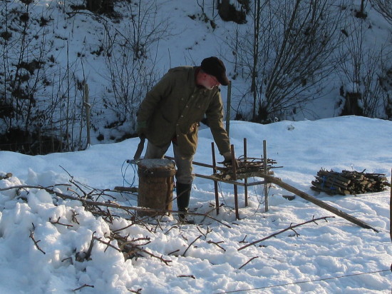 Um auf der Inselmatt den Holzbackofen aufzuheizen braucht es jeweils mindestens fünf Wedele (Reisigbündel als Brennmaterial). Auch zum Anfeuern der Holzheizung sind Wedele ideal. Ich schaffe zwei bis drei pro Stunde, spare den Fitnessclubbeitrag und tue erst noch etwas für die Umwelt. Klar es geht auch anders.