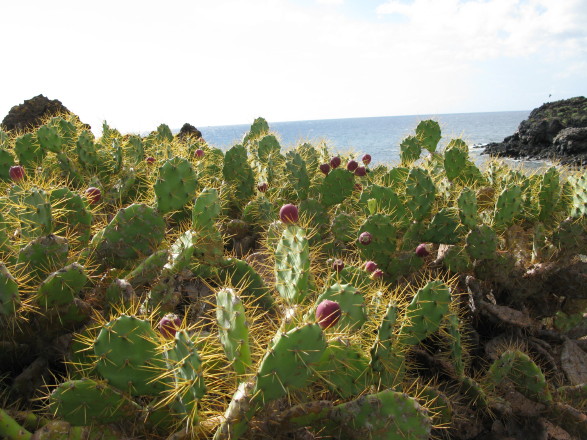Kakteenfrüchte sind für mich etwas Besonderes und in Teneriffa wachsen sie überall. Dass Kakteen Stachel haben wusste ich natürlich, aber dass die feinen „Härchen“ an der Kaktusfrucht so lästige Widerhaken haben und sich in der Haut nur mit Mühe wieder lösen lassen, das wusste ich leider nicht… Das nächste Mal nehme ich Handschuhe mit!