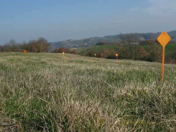 Damit ich bei meinen Fahrten über Feld wirklich keine bald aufblühenden Orchideen (mehr) beschädige, hat Stephanie die besonders wertvollen Exemplare mit Piquets geschützt. Das Traktorfahren wird so langsam zu einem eigentlichen Hindernisparcours…