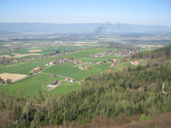 Plötzlich steigt in der Ferne (Ammerzwil, Gemeinde Grossaffoltern, Distanz ca. 6 km)) eine schwarze Rauchsäule in den Himmel…