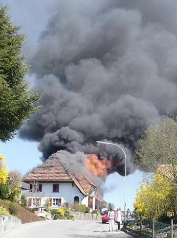 Als ehemaligem Feuerwehrmann war mir sofort klar, dass es sich um einen Hausbrand handeln musste. Und in der Tat, kaum eine Stunde später waren bereits die ersten Bilder auf dem Netz (Bieler Tagblatt).