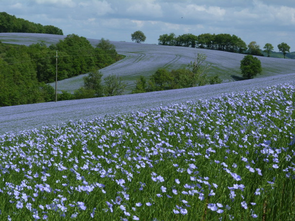 … noch einmal ein Bild von dem wunderschönen Flachsfeld (champs de lin) in Traversères, auch wenn die Blumen inzwischen verblüht sind…