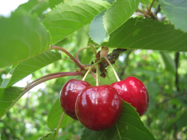 Das trockene warme Wetter hat offenbar mitgeholfen, dass die Kirschbäume dieses Jahr ausgesprochen üppig Früchte tragen. Dazu kommt, dass im Gegensatz zu den vorangehenden Jahren die Vögel sonderbarer Weise die Kirschen in Ruhe lassen!