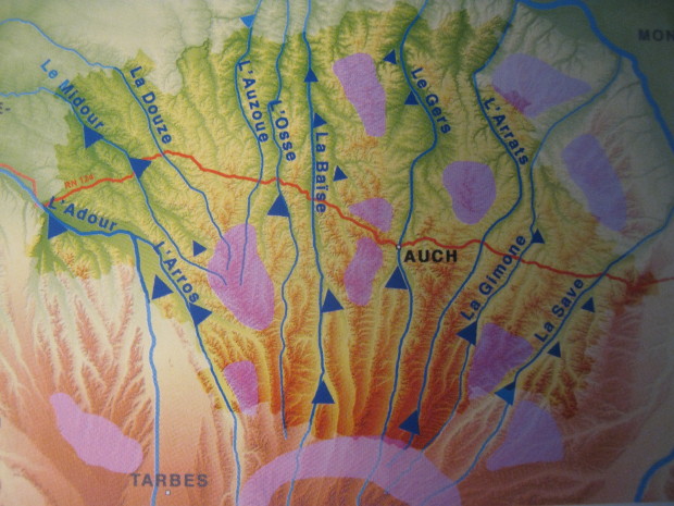 Ich empfinde es als wohltuend, in einer intakten, vielseitigen Kulturlandschaft zu leben. Das hügelige, ländliche Gers wird von Norden gegen Süden von einer Anzahl Bächen oder Flüsschen durchquert, die mit Ausnahme des Adour alle in die Garonne münden. Unser Ruisseau La Oeyte auf der südlichen Seite und der Ruisseau d’Embarrut auf der nördlichen Seite unseres Heimwesens (die während des Sommerhalbjahres allerdings meist völlig ausgetrocknet sind) münden in den Arrats, der seinerseits stark maändrierend Richtung Norden in die Garonne und damit schlussendlich in den Atlantik fliesst. Die Bäche sind durch Hecken und Krautsäume begleitet und tragen viel bei zur Artenvielfalt und einer vielgestaltigen Landschaft.